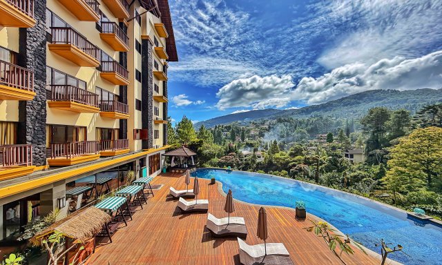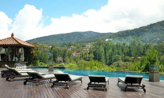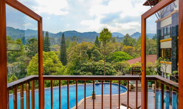 The hotel is situated on a hill which provides it with a spectacular view of Mount Salak. Feel the stress of daily life melts away as you relax in the infinity pool, explore the tranquil grounds surrounding the hotel, and enjoy the sunset view.